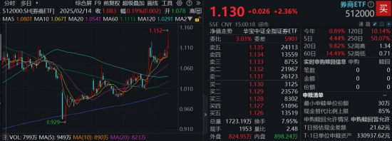 “牛市旗手”再次爆发,A股顶流券商ETF(512000)场内价格一度飙升4.35%,刷新年内新高,收涨2.36%,全天成交额19.52亿元,环比放量139.8%。