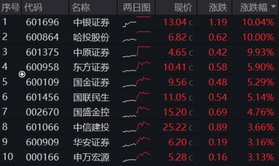 二、券商接过领涨大旗,3股涨停,东财263亿成交额登顶!512000放量上探4%,刷新年内新高