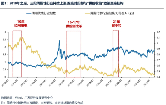 复盘历史行情节奏,广发证券指出,历史存在三段典型的供给收缩案例,包括2010年的拉闸限电,2016-17年的供给侧改革与2021年的“双碳”。由于与经济增长的总量目标存在矛盾,对供给侧收缩政策,市场往往从将信将疑逐渐走到逐步确认,股价会滞后于政策的定调;由于供给侧限产可能短期引发总产出下降,经济周期相关品种容易走出“先抑后扬”的态势。