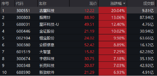 “稳定币概念+互联网券商”双双走强,金融科技指数涨超3.5%再次刷新发布以来新高!成份股大面积飘红,古鳌科技20CM涨停,金证股份、恒宝股份封板,互联网券商龙头指南针大涨超12%创历史新高,安硕信息、大智慧、宇信科技、长亮、拓尔思、财富趋势、信安世纪等多股涨超5%。