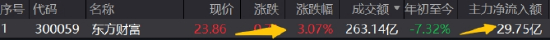 1、“券茅”东方财富全天成交额飙升至263.14亿元,主力狂揽29.75亿元,登顶A股吸金、成交“双冠王”。