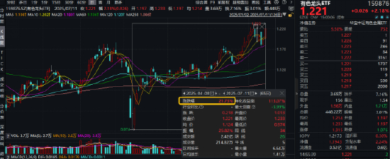 有色金属板块延续强势行情,两大巨头北方稀土、包钢股份官宣提价引爆稀土概念股,有色龙头ETF(159876)场内价格涨2.18%报1.221元,再创年内新高!