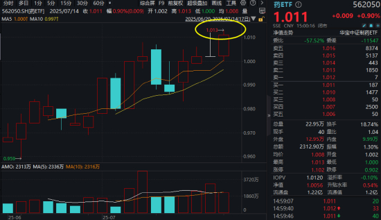 制药板块今日逆市走强,创新药、中药联袂拉涨,聚焦龙头药企的药ETF(562050)场内价格收涨0.9%,创上市以来新高!全天成交2313万元。
