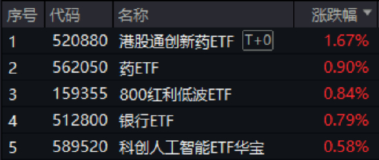盘面上,制药板块走强,创新药、中药联袂拉涨,高纯度聚焦创新药产业链的港股通创新药ETF(520880)场内价格大涨1.67%,聚焦龙头药企的药ETF(562050)场内价格收涨0.9%,创上市以来新高;高股息继续发力,800红利低波ETF(159355)、银行ETF(512800)双双收红。人工智能相关方向继续上扬,重点布局国产AI产业链的科创人工智能ETF华宝(589520)场内价格收涨0.58%,日线两连阳。下跌方面,稳定币、跨境支付等热门概念股集体下挫,金融科技ETF(159851)场内价格收跌2.64%,失守五日线。