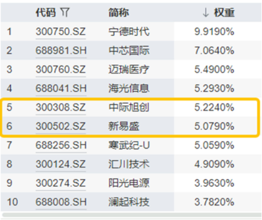 图:科创创业50指数前十大权重股