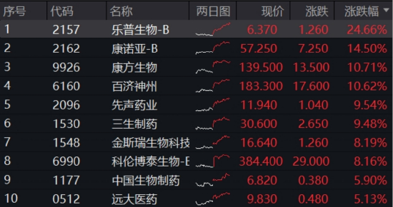 板块个股全线猛攻,多只千亿巨头起舞,百济神州、康方生物双双涨超10%,康方生物、三生制药、科伦博泰生物-B、药明合联多股齐创历史新高。
