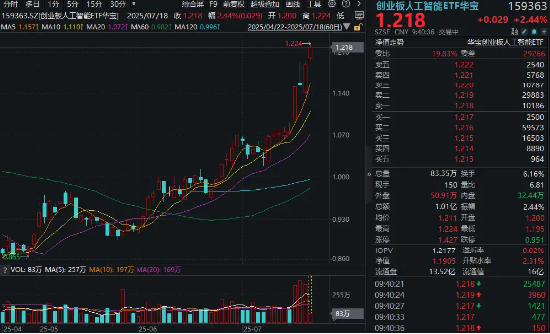 CPO强者恒强!中际旭创涨超8%创历史新高,创业板人工智能ETF(159363)涨超2%继续放量突破