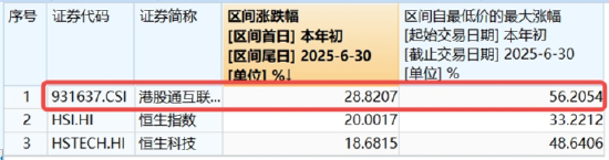 公开资料显示,港股互联网ETF(513770)及其联接基金(A类 017125;C类 017126)重仓“ATM三巨头”,合计持有“阿里系”、“腾讯系”、“小米系”合计权重达61.06%,成为港股AI投资利器。数据显示,本轮行情启动以来至6月末,中证港股通互联网指数累计涨幅超28%,明显优于恒指、恒科指同期表现,区间最大涨幅更是高达56.21%,领涨弹性突出。