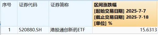 涨幅第一的港股通创新药ETF,520880 ,有些陌生。老巴瞅了眼,这只产品7月7日才刚上市,上市第二周,涨幅就冲到了全市场第一,上市以来10个交易日,涨幅超15%,有点意思。