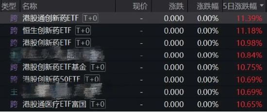 老巴拉了下单周ETF涨幅排行榜,前几位几乎被清一色的港股创新药主题产品包揽,这行情也是很极致了。