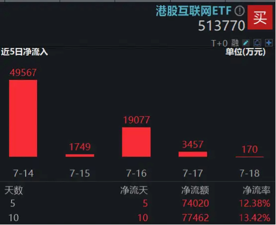 值得注意的是,港股科网板块近期获资金持续涌入,根据上交所数据,港股互联网ETF(513770)已连续10个交易日吸金,合计净流入7.75亿元。