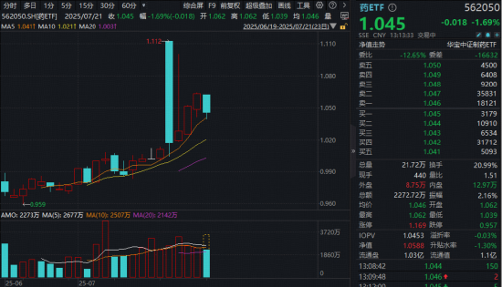 八连涨后首度回调,药ETF盘中下探2%,百利天恒领跌!医疗ETF溢价走阔!“政策加码+业绩转暖”逻辑或仍在