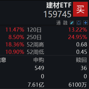 今日,受雅鲁藏布江下游水电工程开工和10大重点行业稳增长方案的利好消息影响,建材、基建、钢铁、煤炭等顺周期板块涨幅居前。建材ETF(159745)高开高走后涨停,当日净申购近7亿份。基建ETF(159619)也表现不俗,最终收涨超6%。究其原因,消息和政策层面的多方面利好从需求和供给两侧对顺周期板块行情提供了支撑。