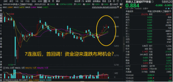 寒武纪定增瘦身募资+科创板六周年!重仓国产AI的589520七连涨后,首回调!资金迎来逢跌布局机会?