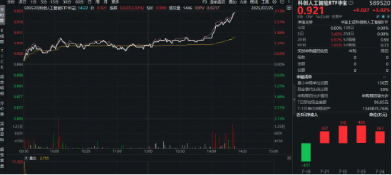 特朗普发布“AI行动计划”,国产替代重要性凸显!重仓国产AI的589520盘中猛拉3%,寒武纪涨超7%