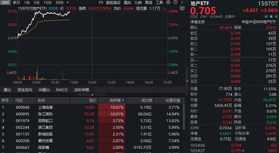 成份股方面,上海临港、张江高科涨停,表现最为强势,招商蛇口、滨江集团、新城控股、万科A、衢州发展等多股涨超2%。