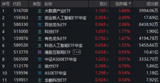 二、大涨3.6%!大数据产业ETF领跑全市场ETF!重磅政策利好+阿里扩张布局,516700上探阶段高点!