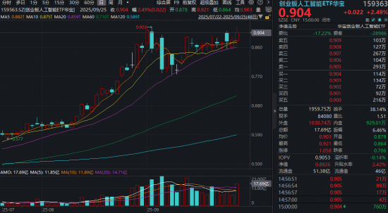 同类比较看,截至9月24日,创业板人工智能ETF(159363)最新规模超45亿元,近1个月日均成交额超11亿元,在跟踪创业板人工智能指数的6只ETF中高居第一。