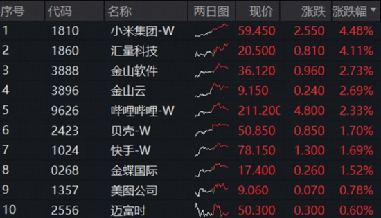 今日港股AI延续升势,小米集团-W接力领涨,盘中一度涨逾5%,收涨4.48%;哔哩哔哩-W涨超2%,快手-W涨逾1%,腾讯控股、美团-W跟涨。昨日大涨9%的阿里巴巴-W盘中一度涨超1%续创四年新高,短线微调收跌1.15%。