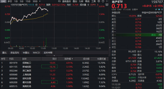 全市场唯一地产ETF(159707)拉升3%领涨全市场,招商蛇口大涨超5%!机构:优质房企或更具备α属性