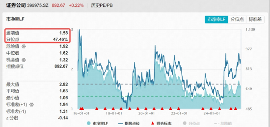 截至最新,券商ETF(512000)跟踪的中证全指证券公司指数市净率PB仅1.58倍,位于10年来47.46%分位点的中低区间,在牛市氛围下估值性价比凸显。