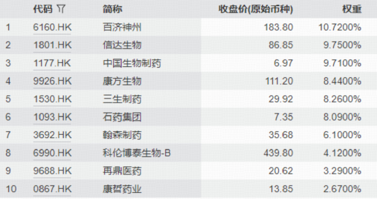 图:截至10月底,恒生港股通创新药精选指数前十大成份股权重合计71.15%