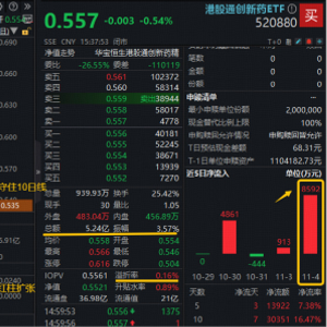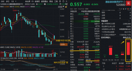港股通创新药ETF(520880)是全市场首只跟踪该指数的ETF,截至11月3日,基金规模首次突破20亿元,上市以来日均成交4.74亿元,在同指数ETF中规模最大、流动性最优。