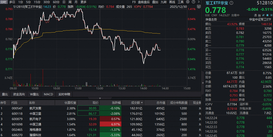 商业航天突发跳水,中国卫通炸板!军工ETF华宝(512810)上探阶段新高后回落翻绿,6只成份股振幅超10%