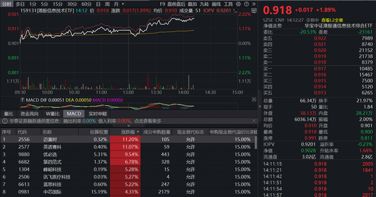 12月30日午后,港股硬科技逆市走高,迈富时、英诺赛科涨超11%,优必选涨超9%,第四范式涨超6%,中芯国际大涨超4%。全市场首只聚焦“港股芯片”产业链的港股信息技术ETF(159131)午后震荡走高,现涨1.89%,实时成交额超5700万元。