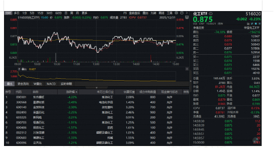 三、锂电产业链量价齐升引爆新机遇!震荡收官不改强势,化工ETF(516020)标的指数年内涨超40%!资金悄然布局