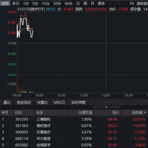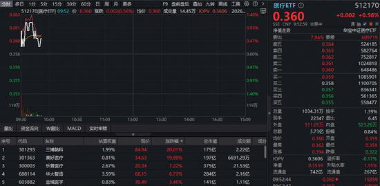 1月6日,医疗ETF(512170)高开后一度续涨逾1%,场内价格创20日新高!实时成交额超3.5亿元。昨日,医疗ETF单日大涨超5%连收5根均线。