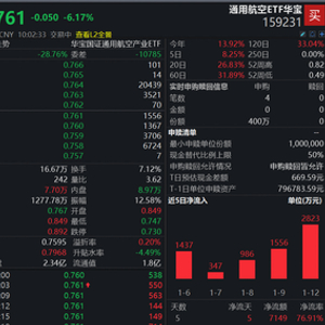 1月13日早盘,航空航天+卫星导航在连续暴涨后迎来回调,广联航空、航天环宇、航天宏图华测导航等多股暴跌超10%。一键布局商业航天+卫星导航+低空经济+大飞机的通用航空ETF华宝(159231)场内价格现跌6.17%,资金无惧调整,实时净申购400万份!此前5日连续获资金净流入超7000万元。
