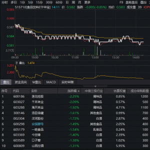 成份股方面,白酒跌幅居前,调味品等部分大众品亦表现不佳。截至发稿,莲花控股、千禾味业双双大跌超2%,山西汾酒、海天味业、洋河股份等多股跌超1%,拖累板块走势。