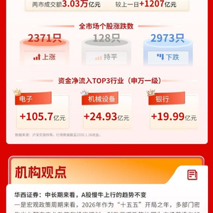 三大指数震荡收跌,半导体板块走强,机构:中长期来看,A股慢牛上行的趋势不变 | 华宝3A日报(2026.1.16)