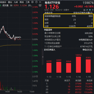 1月20日,有色ETF华宝(159876)下探回升,彰显韧性,场内价格现涨0.18%,截至发稿,获资金实时净申购2880万份,此前10日连续狂揽6.44亿元!反映资金看好有色金属板块后市,逢跌进场抢筹!