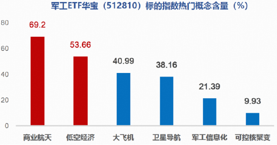 数据截至2026.1.18。上述含量占比指数分别为商业航天指数(886078)、低空经济指数(886067)、大飞机指数(885566)、卫星导航指数(885574)、军工信息化指数(886076)、可控核聚变指数(886065)。