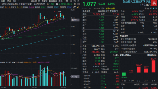 热门ETF方面,重仓光模块龙头的创业板人工智能ETF(159363)场内收跌2.36%,失守20日均线,单日缩量成交6.33亿元。近期资金连续加仓,四日合计增持5.3亿元。