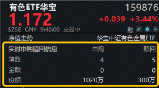 今日(2月24日)有色金属板块再续雄风, 揽尽有色金属行业龙头的有色ETF(159876)场内价格盘中飙涨超3.6%,现涨3.44%。值得关注的是,截至发稿,该ETF获资金实时净申购720万份!反映资金看好板块后市,积极进场布局!