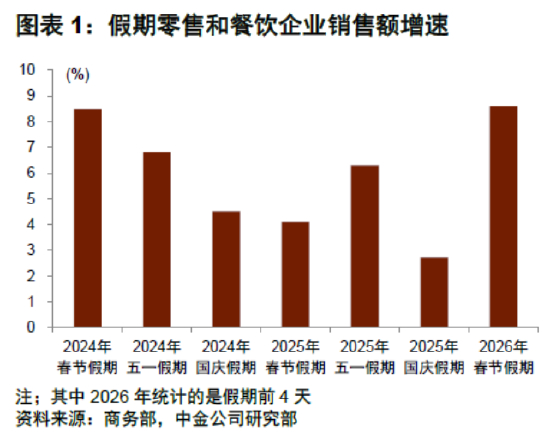 数据显示,刚刚过去的春节假期期间出行及消费景气度稳健提升,促消费政策为消费增长创造了较好的环境。假期头四天,全国重点零售和餐饮企业日均销售额较2025年假期头四天增长8.6%。假期头三天,商务部重点监测的78个步行街(商圈)客流量、营业额比去年假期头三天分别增长4.5%和4.8%。2月16日出版的《求是》杂志发表习总书记重要文章指出,2026年经济工作的重点任务包括“坚持内需主导”、“统筹促消费和扩投资”等。