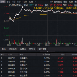 A股马年首个交易日(2月24日),军工板块盘初短线下探后快速回升,而后持续飘红,高人气军工ETF华宝(512810)摸高1.98%,收涨1.16%日线三连阳,全天频现溢价,收盘溢价率仍有0.29%,显示买盘资金活跃。