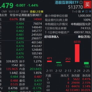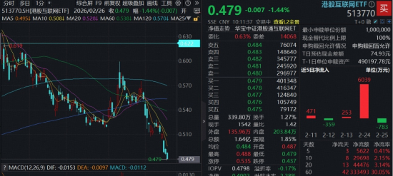 2月26日,港股AI再现回调,港股AI核心资产——港股互联网ETF(513770)场内价格现跌1.44%,再探近10个月以来新低。