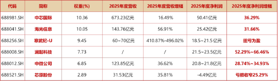 图:上证科创板芯片指数部分权重股2025年度业绩
