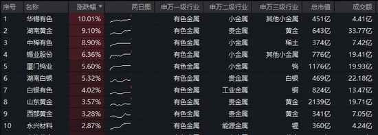 成份股方面,华锡有色盘中触及涨停,股价创历史新高!湖南黄金涨超9%,中稀有色涨逾8%,锡业股份、厦门钨业、湖南白银、白银有色等个股跟涨。