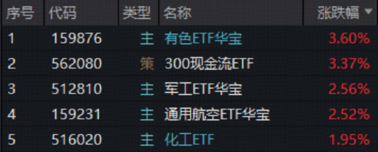 地缘冲突加剧!避险资产猛拉,有色ETF华宝收涨3.6%!主力火速加码,军工ETF华宝(512810)上探3.34%!