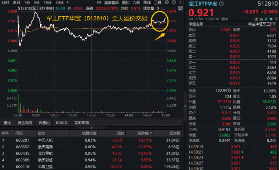 二、大变局!主力火速加码战略资产,军工ETF华宝(512810)上探3.34%,交投翻倍激增!成份股批量涨停!