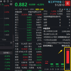 突发!军工掉头向下,军工ETF华宝(512810)挫逾4%高频溢价!最新单日吸金超3800万元