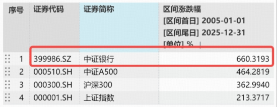 另一方面,从历史长期表现看,银行板块具备优异的抗风险能力。数据显示,截至2025年末,中证银行指数自2005年以来累计收益率高达660.32%,显著领先上证指数、沪深300等主流宽基指数。