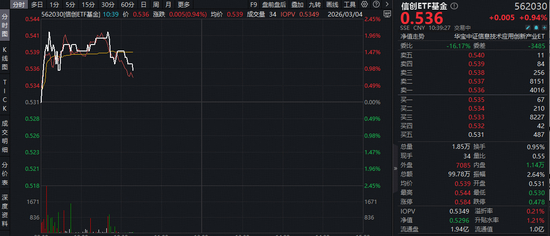 或由于存储芯片龙头佰维存储亮眼业绩提振,今日(3月3日)信创ETF基金(562030)逆市活跃,场内价格盘中拉升2%,现涨0.94%,场内频现溢价区间,显示买盘资金更为强势!