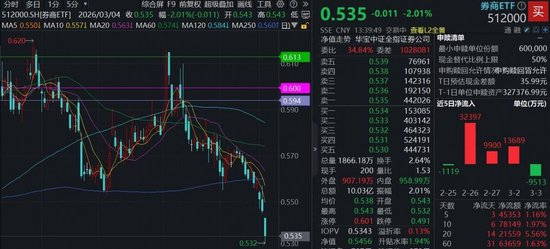 券商板块低开低走,个股集体回调,385亿顶流券商ETF(512000)场内价格跌逾2%,下探2025年7月以来新低。近日券商随市震荡下探,资金逢低积极“抄底”,上交所数据显示,券商ETF(512000)近5日累计获资金净流入4.54亿元。