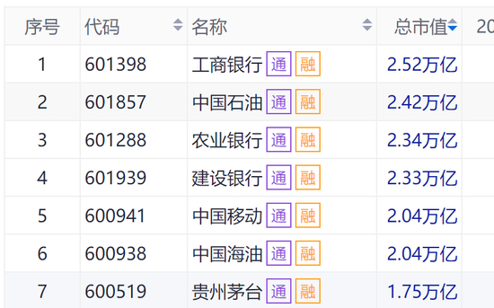 中石油的市值也来到了总市值第二,与第一名工商银行一步之遥了。中国海油最新市值也突破2万亿,位列第六位。